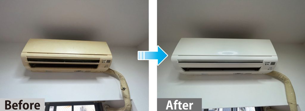 エアコンを丁寧に分解し、内部のフィルターや熱交換器、ファンなどを専用の洗浄剤を使って徹底的にクリーニングします。頑固な汚れやカビも除去します。
